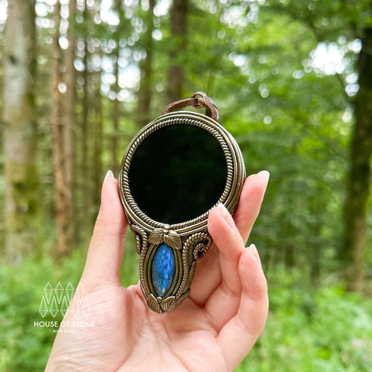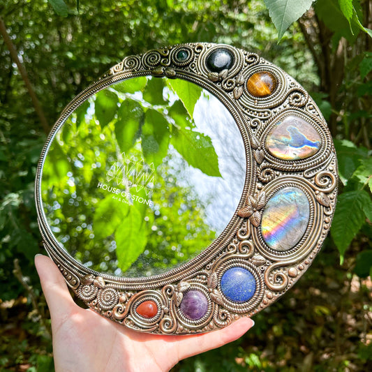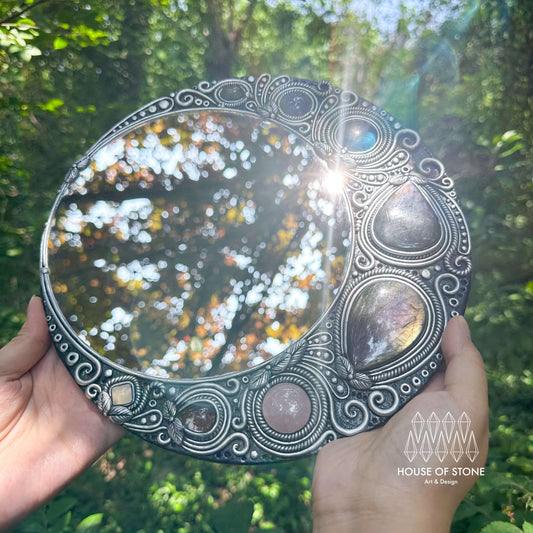 Natural Handmade Crystal Mirror/Magic Crystal Witch Mirror/Labradorite Mirror/Crystal Quartz Mirror/Chakra Healing/Manifest Altar Tool