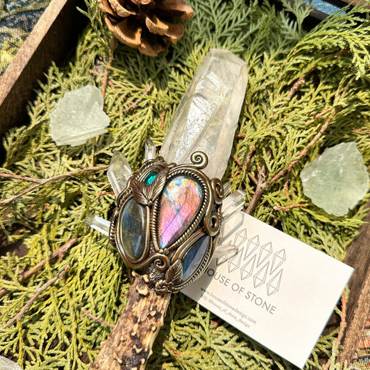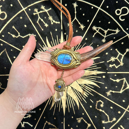 Natural Handmade Crystal Quartz Antler Pendant/Magic Crystal Necklace/Labradorite Antler Pendant/Root Chakra/Boho Necklace/Altar Tool