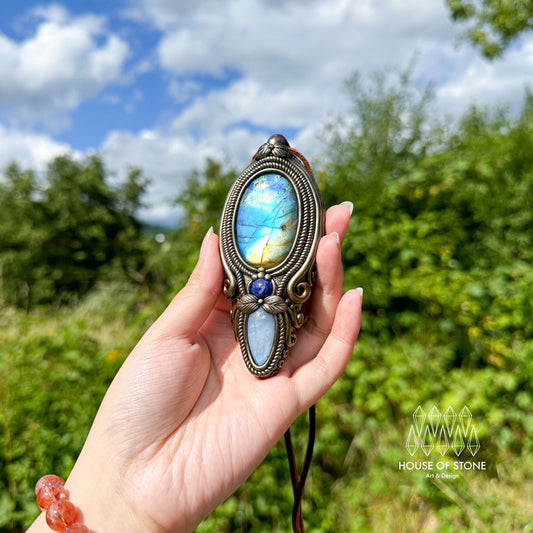 Natural Handmade Labradorite Pendant Necklace/Magic Moonstone Crystal Double-sided Pendant/Labradorite Jewelry/Chakra/Altar Tool