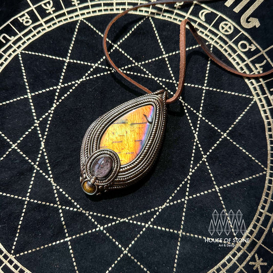 Natural Handmade Labradorite Pendant Necklace/Magic Labradorite Crystal Double-sided Pendant/Amethyst Labradorite Jewelry/Chakra/Altar Tool