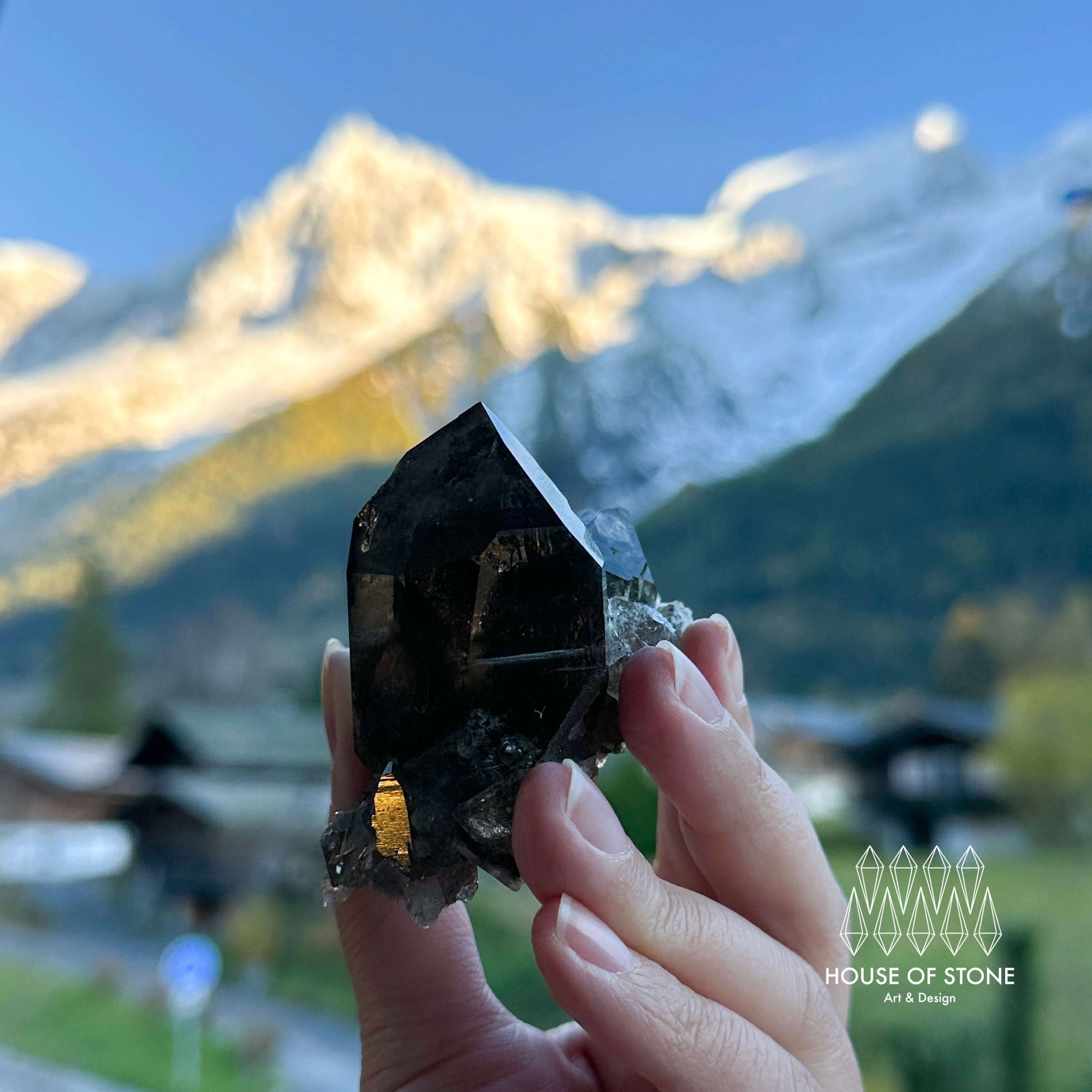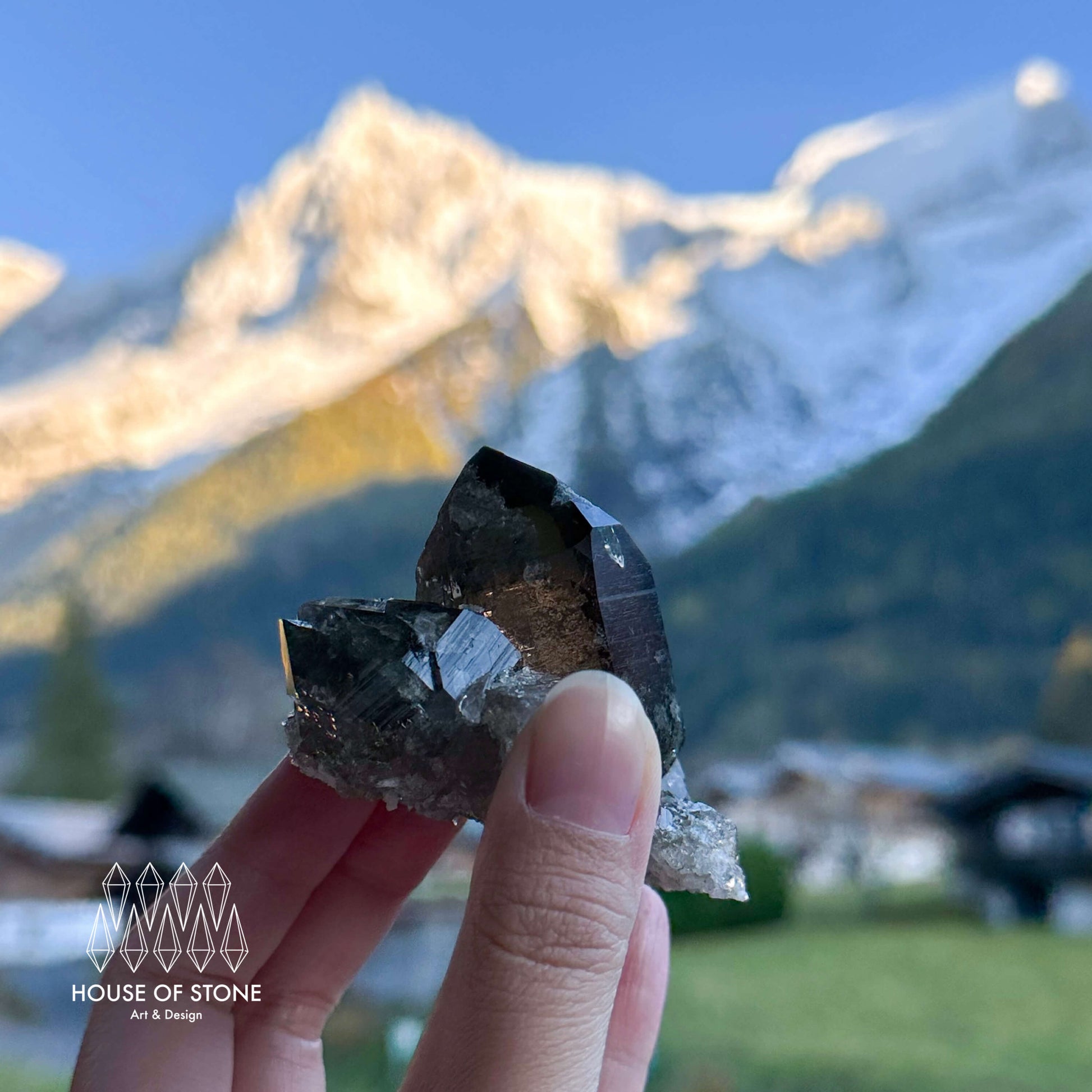 Alpine Mineral Dark Smoky Quartz Point Cluster Specimen/Small Swiss Cluster Apls/Double Terminated Quartz Cluster3