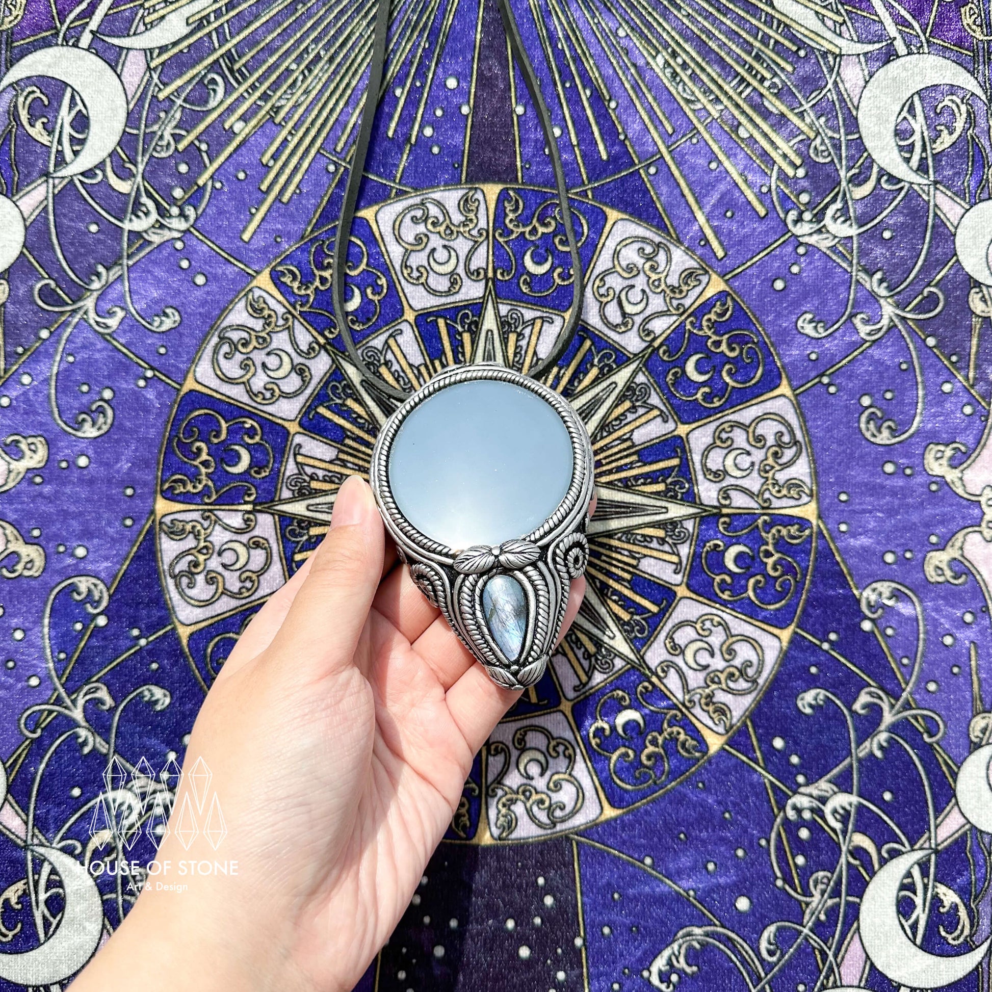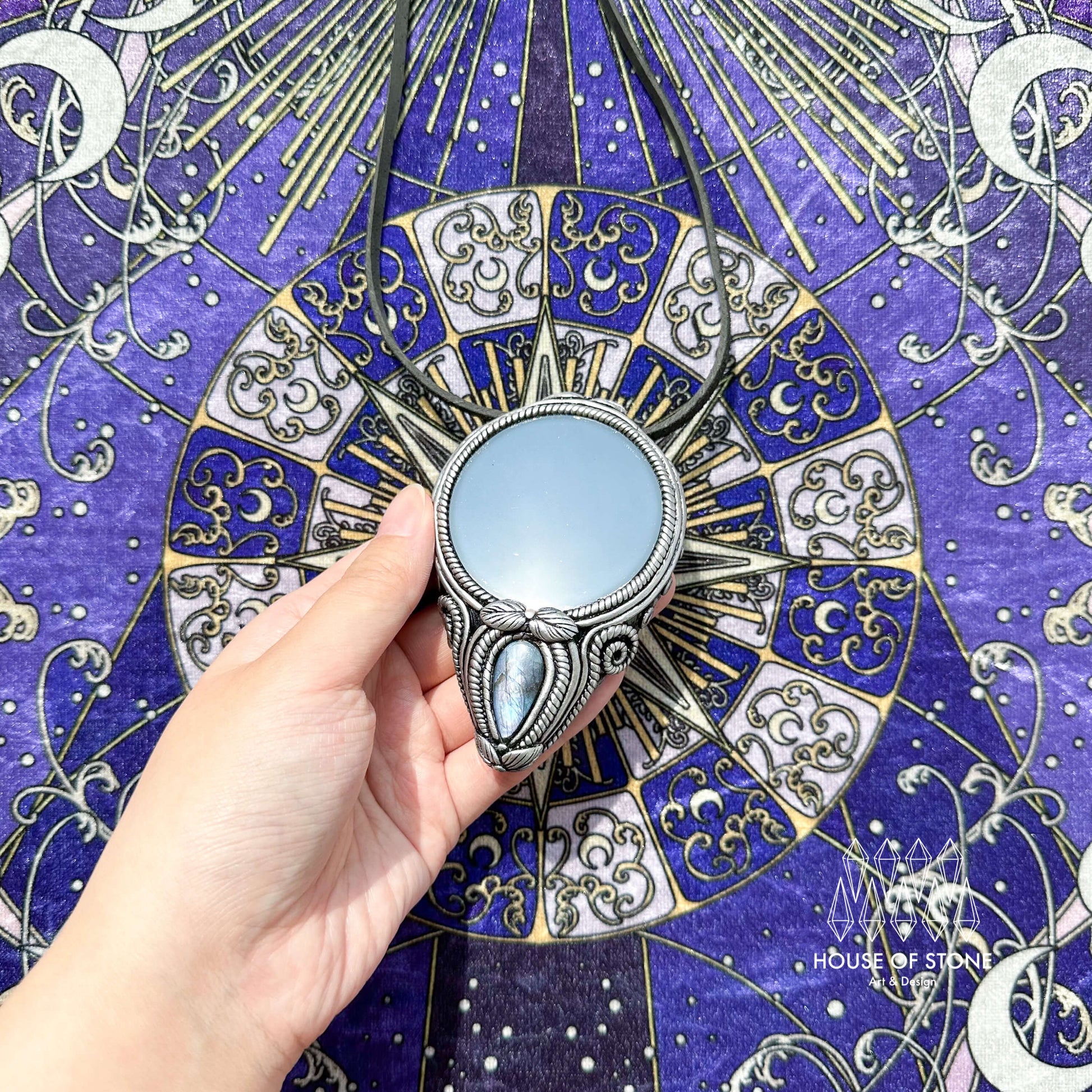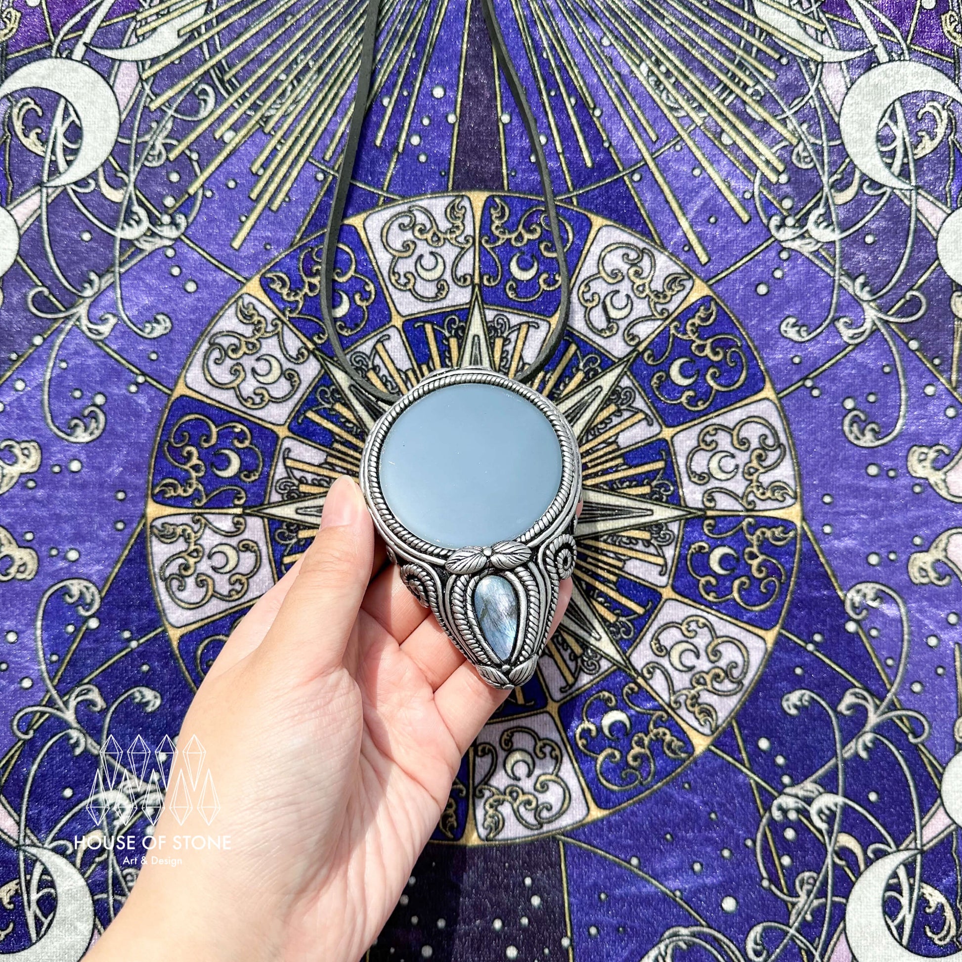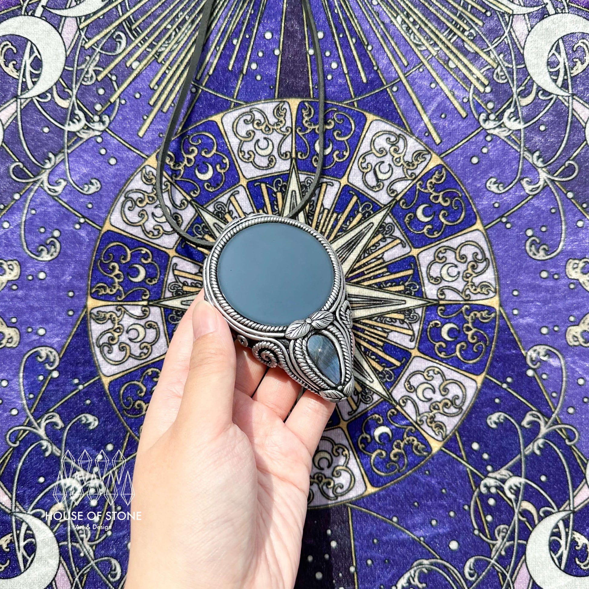 Natural Handmade Black Obsidian Pendant Necklace/Magic Obsidian Mirror Crystal Pendant/Scrying Mirror Labradorite Jewelry/Altar Tool