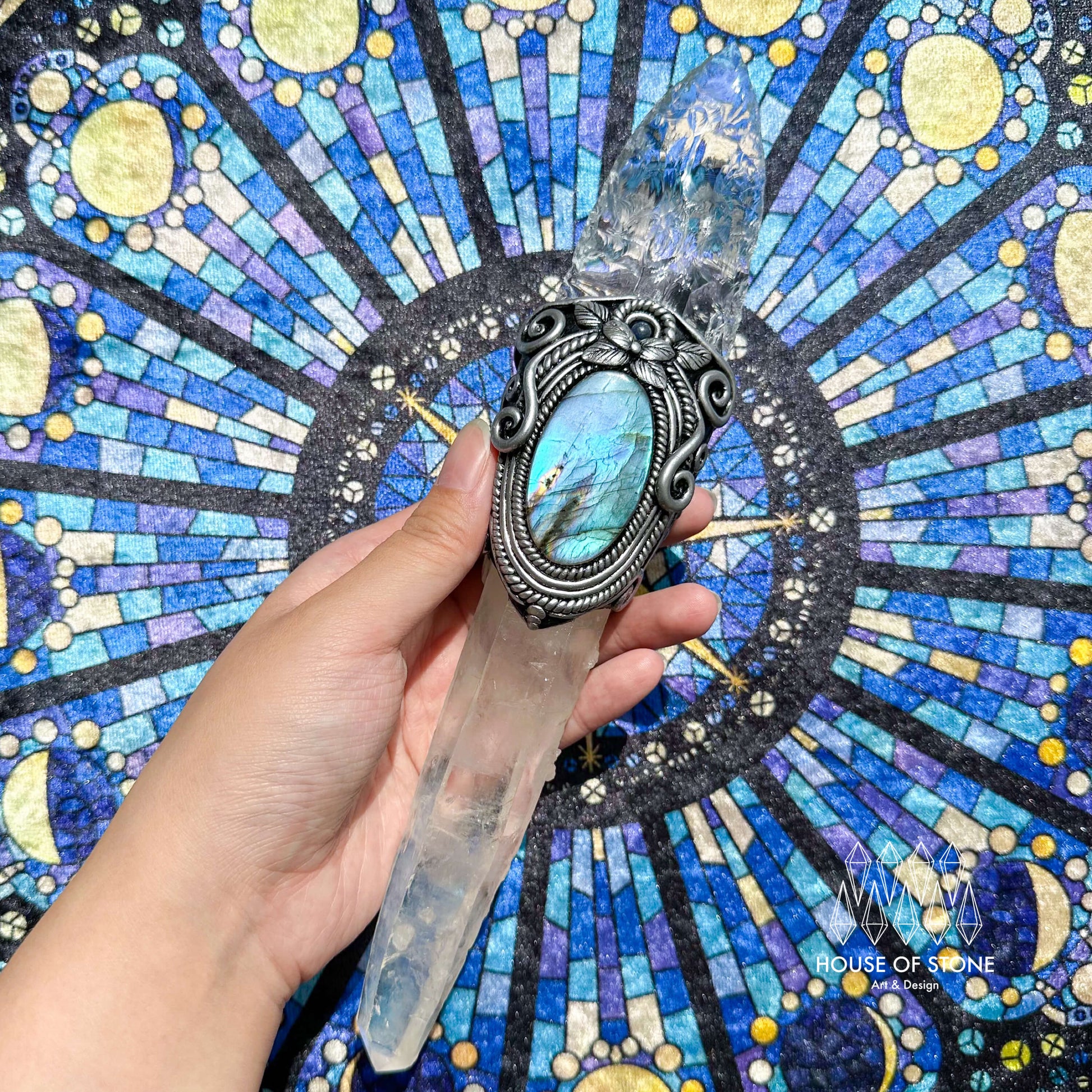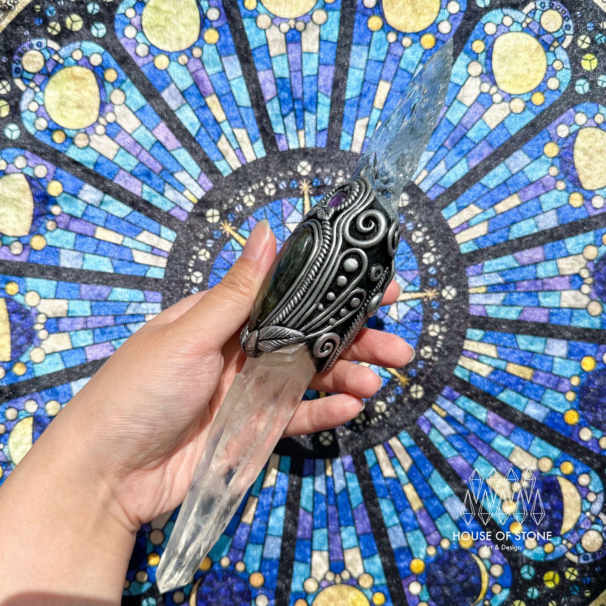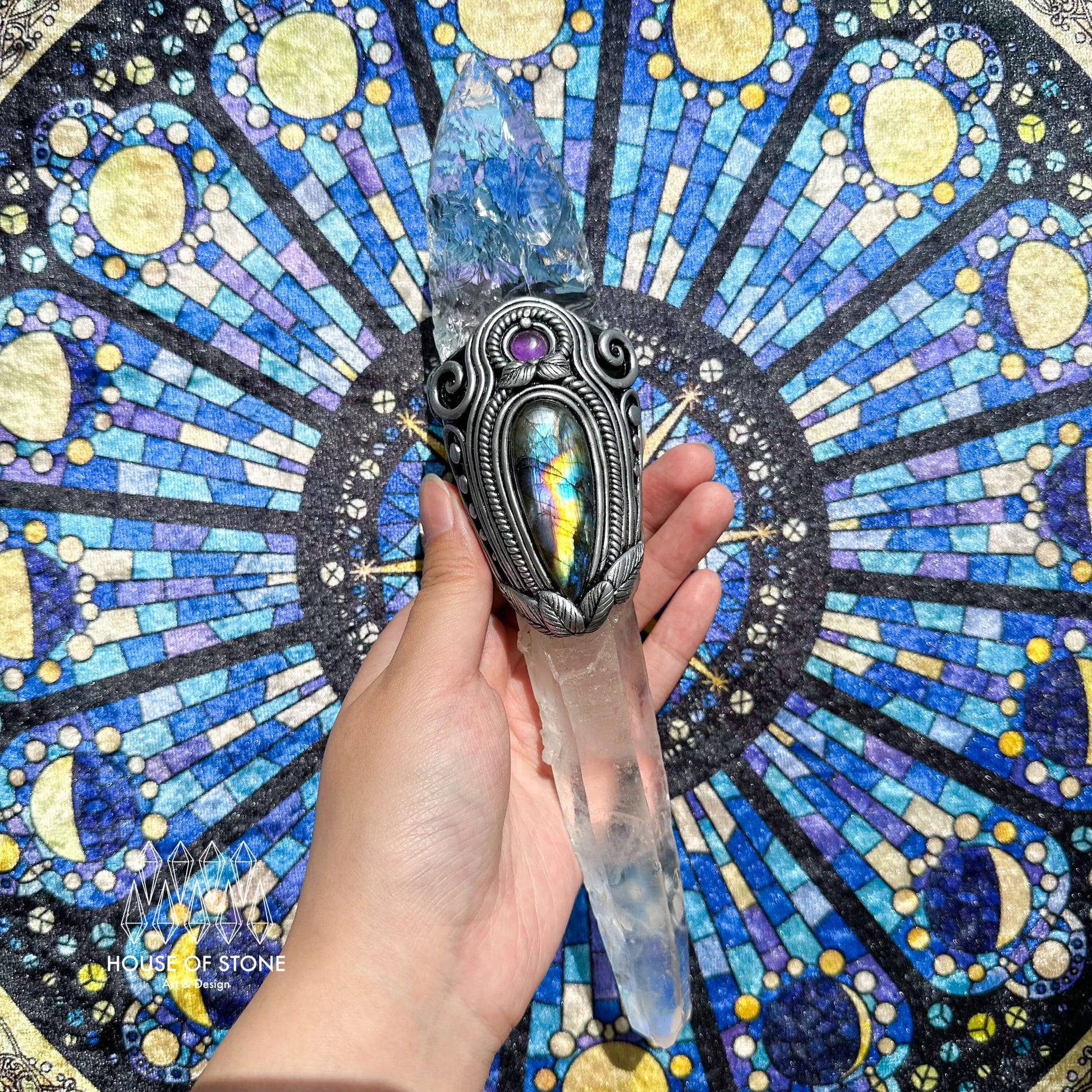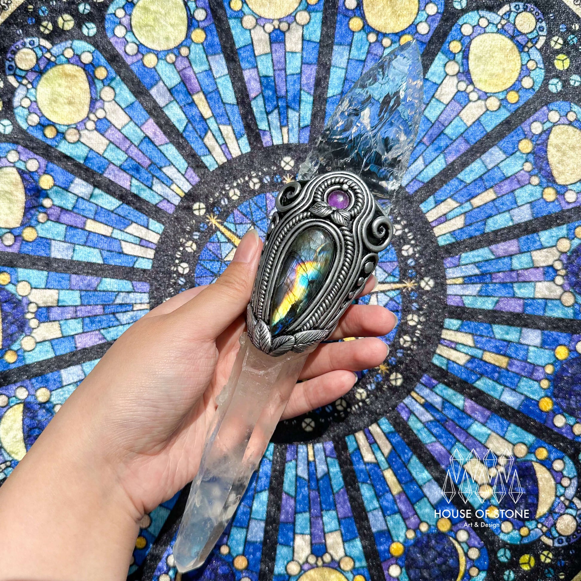 Natural Handmade Clear Quartz Wand/Magic Clear Lemurian Quartz Witch Crystal Wand/Labradorite Amethyst Wand/Chakra/Manifest Altar Tool