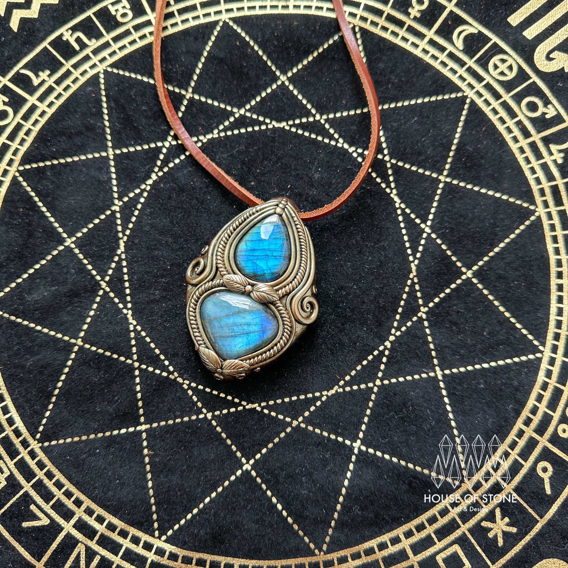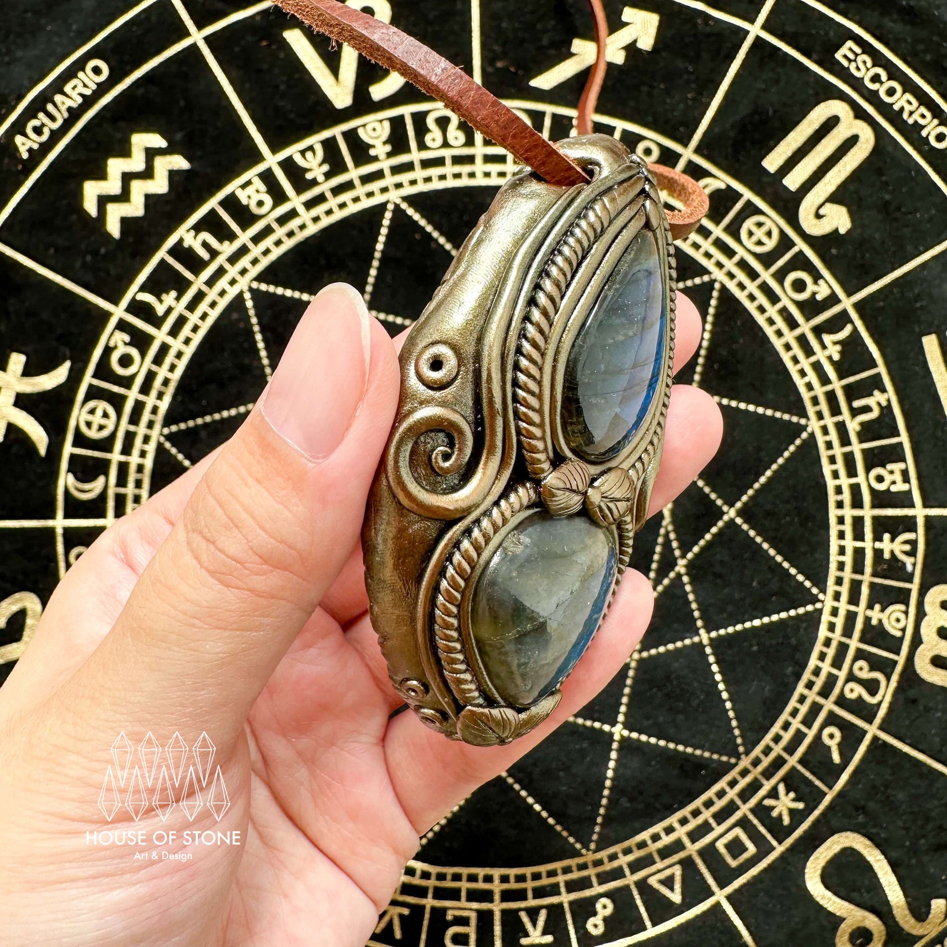 Natural Handmade Labradorite Pendant Necklace/Magic Labradorite Crystal Double-sided Pendant/Labradorite Jewelry/Chakra/Altar Tool