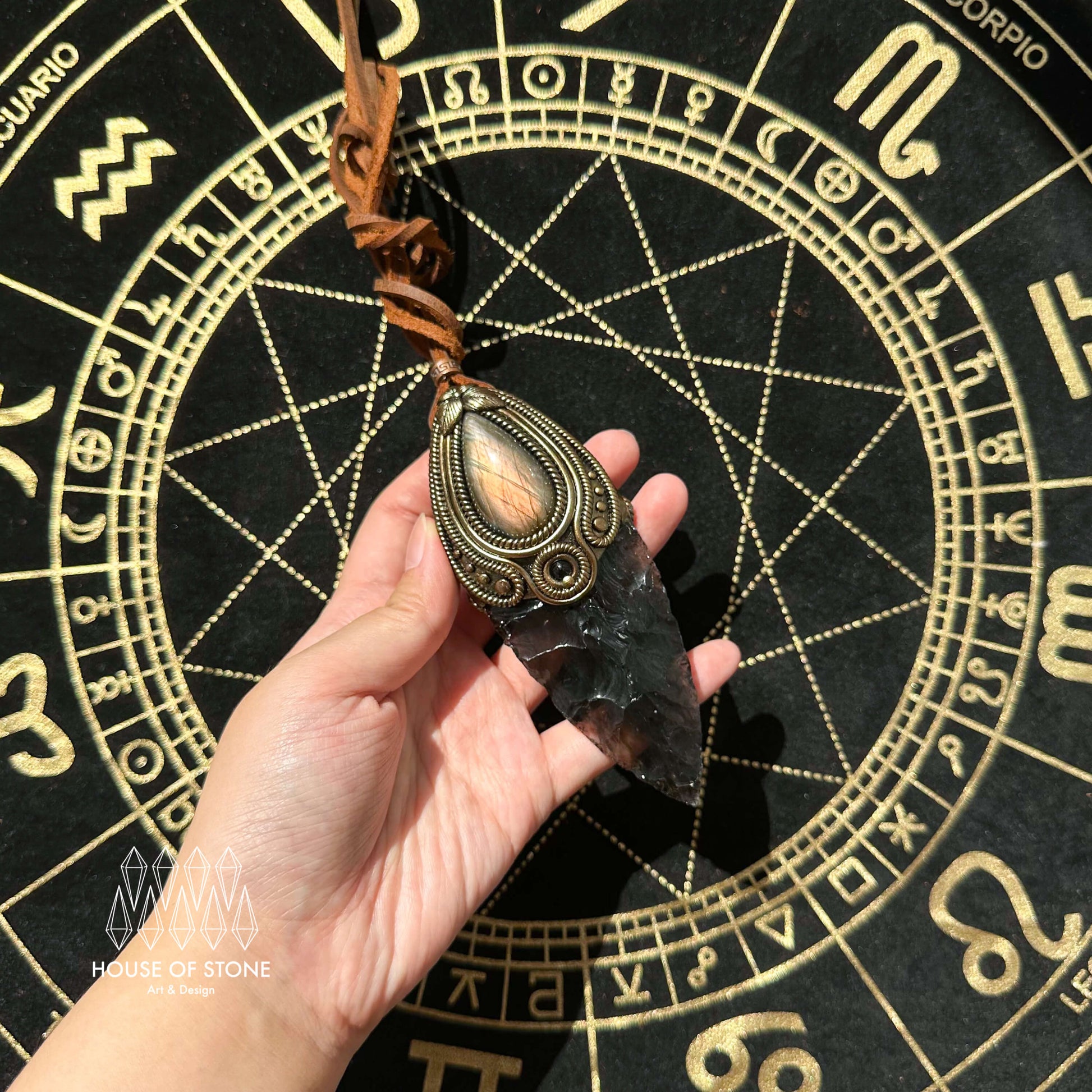 Natural Handmade Smoky Quartz Arrowhead Pendant Necklace/Magic Crystal Double-sided Pendant/Labradorite Jewelry/Chakra/Altar Tool