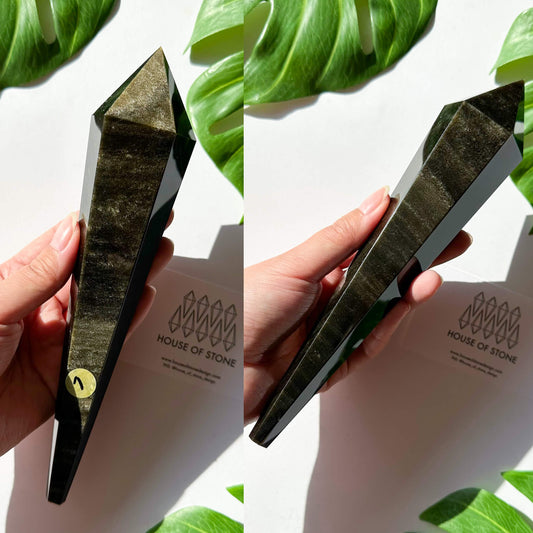Natural Gold Sheen Obsidian Wand/Gold Sheen Obsidian Point Wand/Crystal Gemstone Obsidian Wand Handle/Crystal Stem/Root Chakra Healing