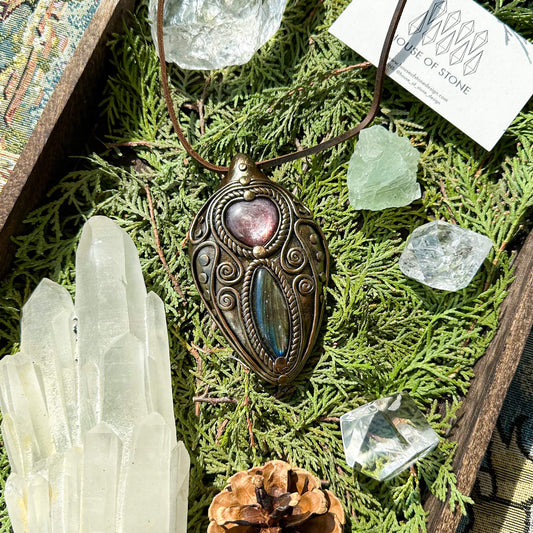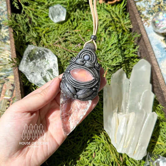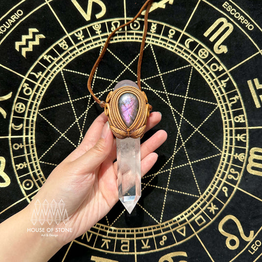 Natural Handmade Clear Quartz Pendant Necklace/Magic Rose Quartz Crystal Double-sided Pendant/Labradorite Jewelry/Chakra/Altar Tool