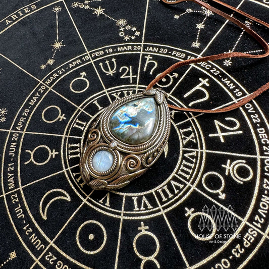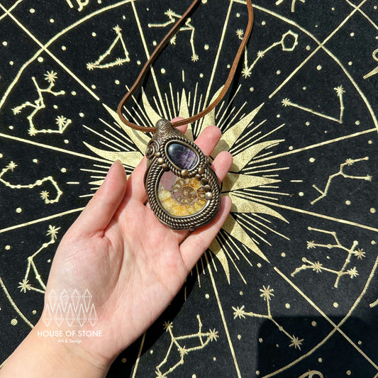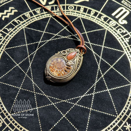 Natural Handmade Ammonite Pendant Necklace/Magic Crystal Double-sided Pendant/Sunstone Jewelry/Chakra/Altar Tool