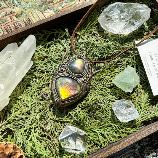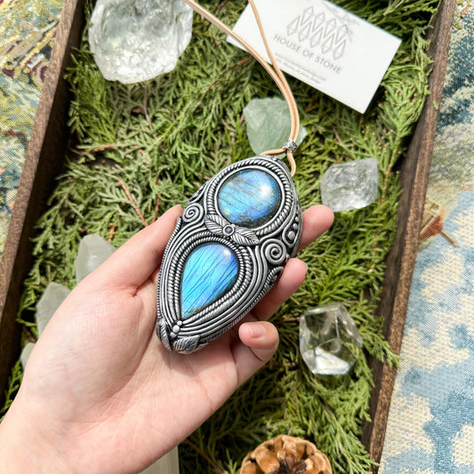 Natural Handmade Labradorite Pendant Necklace/Magic Labradorite Crystal Double-sided Pendant/Labradorite Jewelry/Chakra/Altar Tool