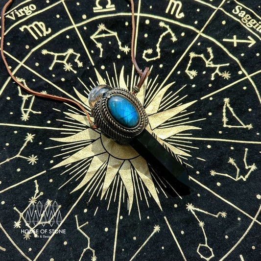 Natural Handmade Black Obsidian Pendant Necklace/Magic Smoky Quartz Crystal Pendant/Labradorite Jewelry/Chakra/Altar Tool