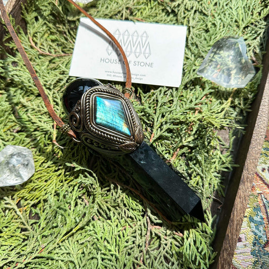 Natural Handmade Smoky Quartz Pendant Necklace/Magic Crystal Double-sided Pendant/Labradorite Necklace/Root Chakra/Manifest Altar Tool