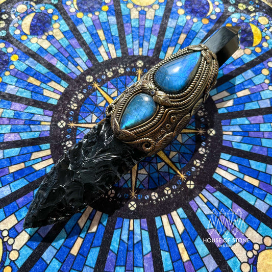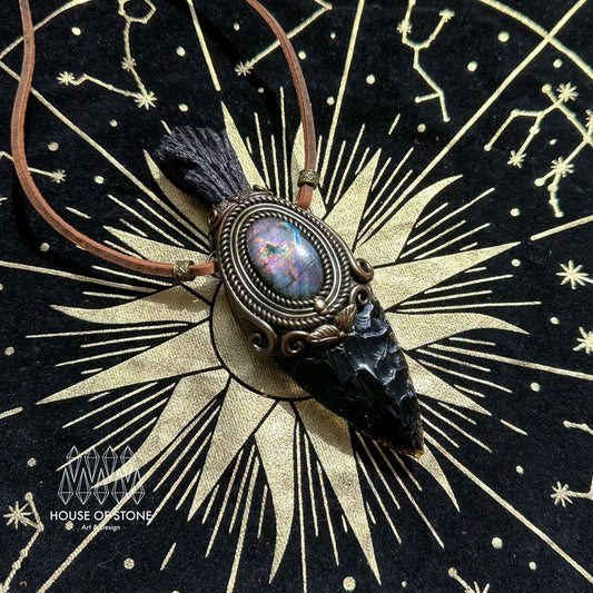 Natural Handmade Black Obsidian Arrowhead Pendant Necklace/Magic Crystal Double-sided Pendant/Labradorite Jewelry/Chakra/Altar Tool
