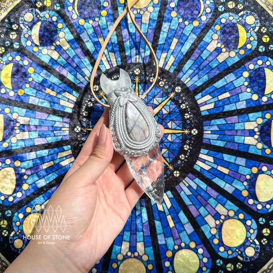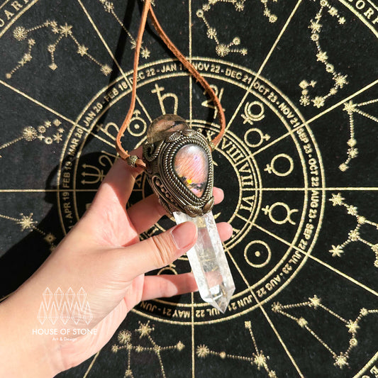 Natural Handmade Clear Quartz Pendant Necklace/Magic Clear Quartz Crystal Double-sided Pendant/Labradorite Jewelry/Chakra/Altar Tool