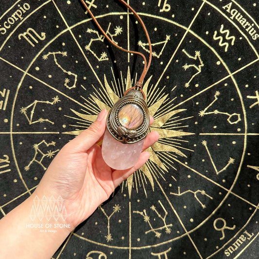 Natural Handmade Rose Quartz Pendant Necklace/Magic Crystal Double-sided Pendant/Labradorite Jewelry/Chakra Healing/Altar Tool