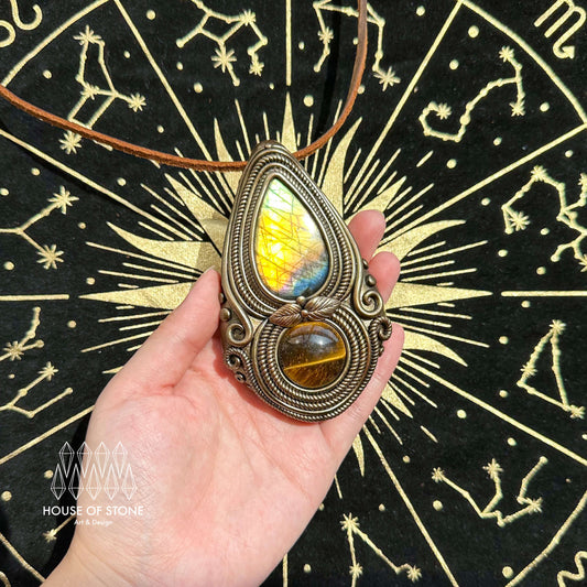 Natural Handmade Labradorite Pendant Necklace/Magic Tiger‘s Eye Jasper Crystal Double-sided Pendant/Labradorite Jewelry/Chakra/Altar Tool