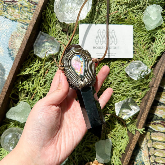 Natural Handmade Labradorite Pendant Necklace/Magic Labradorite Crystal Double-sided Pendant/Labradorite Jewelry/Chakra/Altar Tool