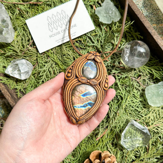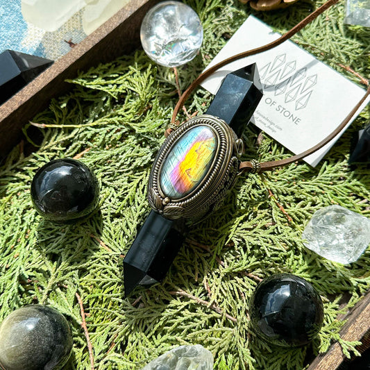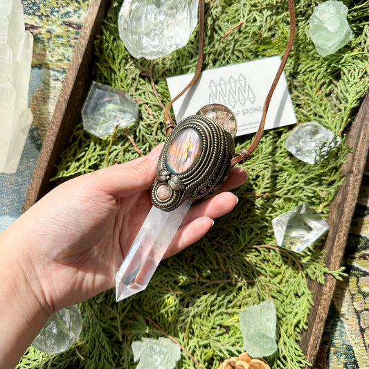 Natural Handmade Clear Quartz Pendant Necklace/Magic Crystal Double-sided Pendant/Labradorite Necklace/Root Chakra/Manifest Altar Tool