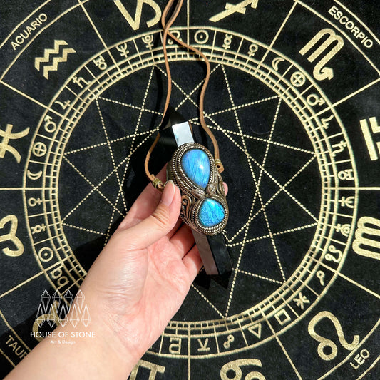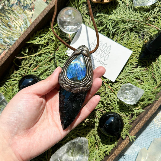 Natural Handmade Black Obsidian Pendant Necklace/Magic Black Obsidian Crystal Pendant/Labradorite Jewelry/Chakra/Altar Tool