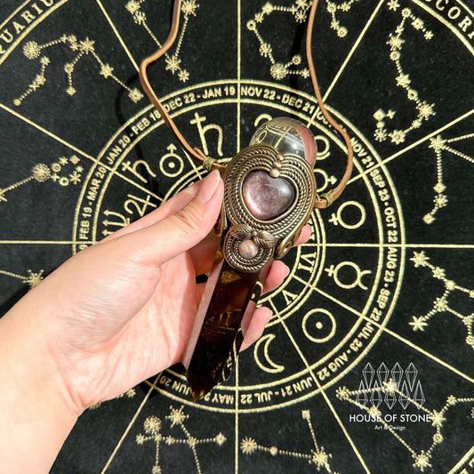 Natural Handmade Smoky Quartz Pendant Necklace/Magic Clear Quartz Crystal Double-sided Pendant/Labradorite Jewelry/Chakra Healing/Altar Tool