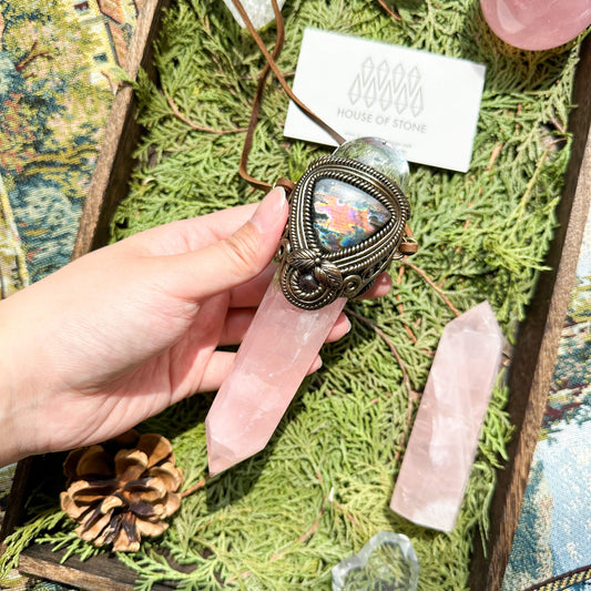 Natural Handmade Clear Quartz Pendant Necklace/Magic Rose Quartz Crystal Double-sided Pendant/Labradorite Jewelry/Chakra/Altar Tool