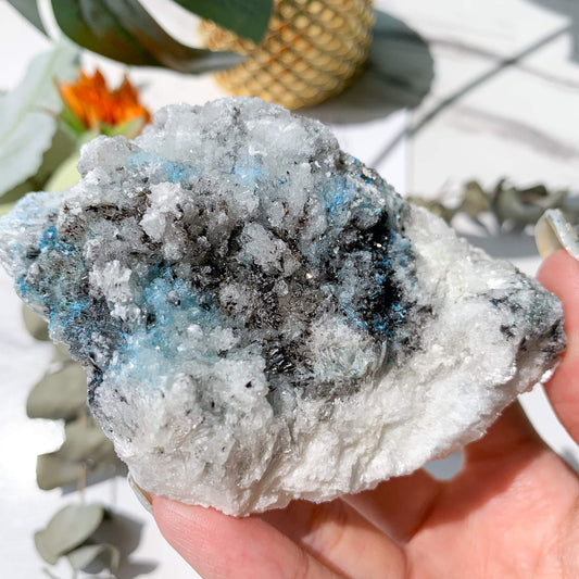 Cyanotrichite with Quartz Specimen/Rare Cyanotrichite Quartz Black Tourmaline Specimen/Natural Cyanotrichite Specimen