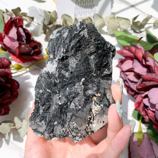 Rare Natural Black Tourmaline with Quartz Specimen/Rare Black Tourmaline Specimen