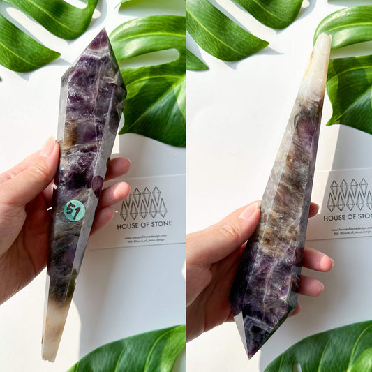 Natural Chevron Amethyst Wand/Chevron Amethyst Crystal Point Wand/Crystal Handle/Amethyst Stem/Wedding Bouquet Handle/Third Eye Chakra Healing/AAA