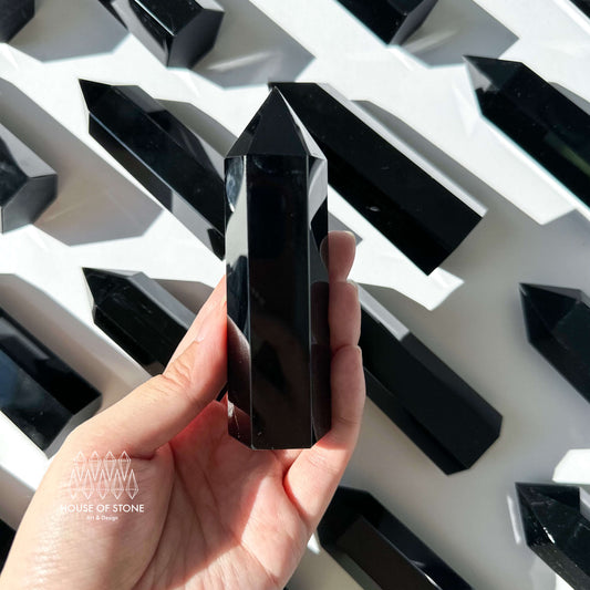 Natural Black Obsidian Point Tower/Black Obsidian Point Obelisk/Crystal Gemstone Obsidian Wand/Root Chakra Healing/AAA