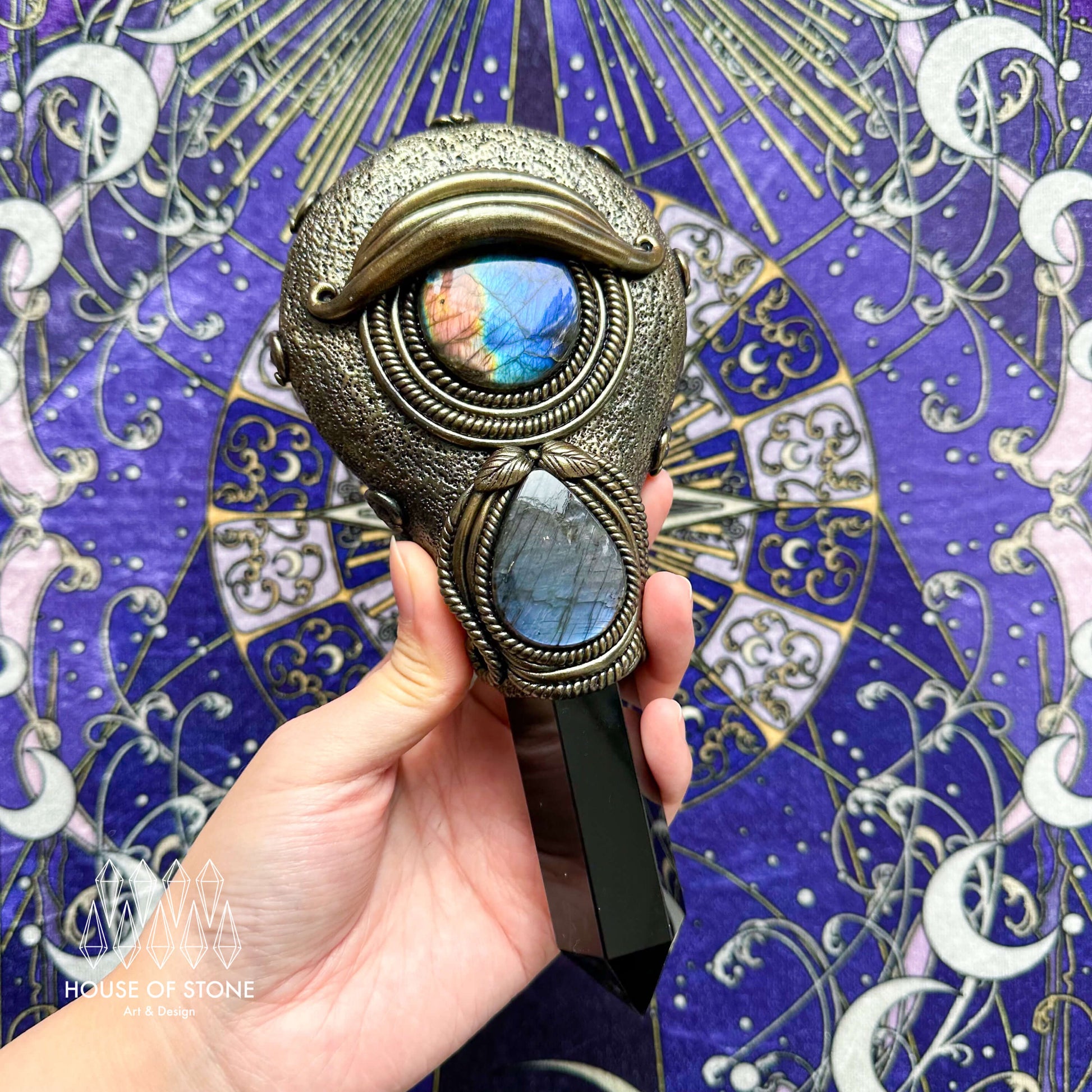 Handmade Natural Black Obsidian Mirror/Magic Obsidian Witch Wand/Crystal Quartz Wand/Scrying Mirror Wand/Root Chakra/Manifest Altar Tool