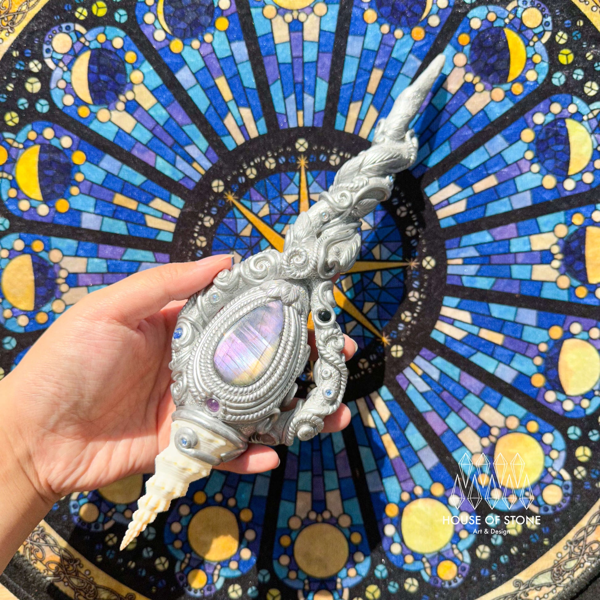 Natural Handmade Conch Shell Crystal Wand/Magic Witch Crystal Wand/Fairy Sea Snail Labradorite Wand/Chakra/Manifest Altar Tool