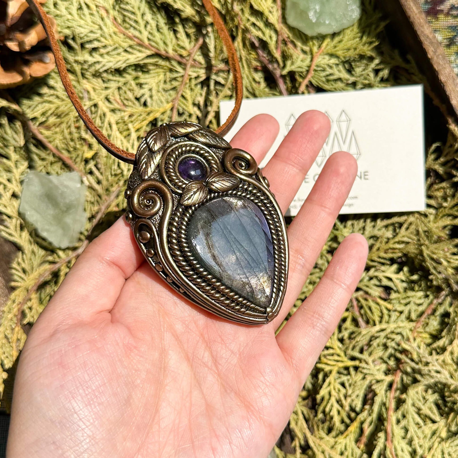 Natural Handmade Labradorite Pendant Necklace/Magic Labradorite Crystal Double-sided Pendant/Amethyst Labradorite Jewelry/Chakra/Altar Tool