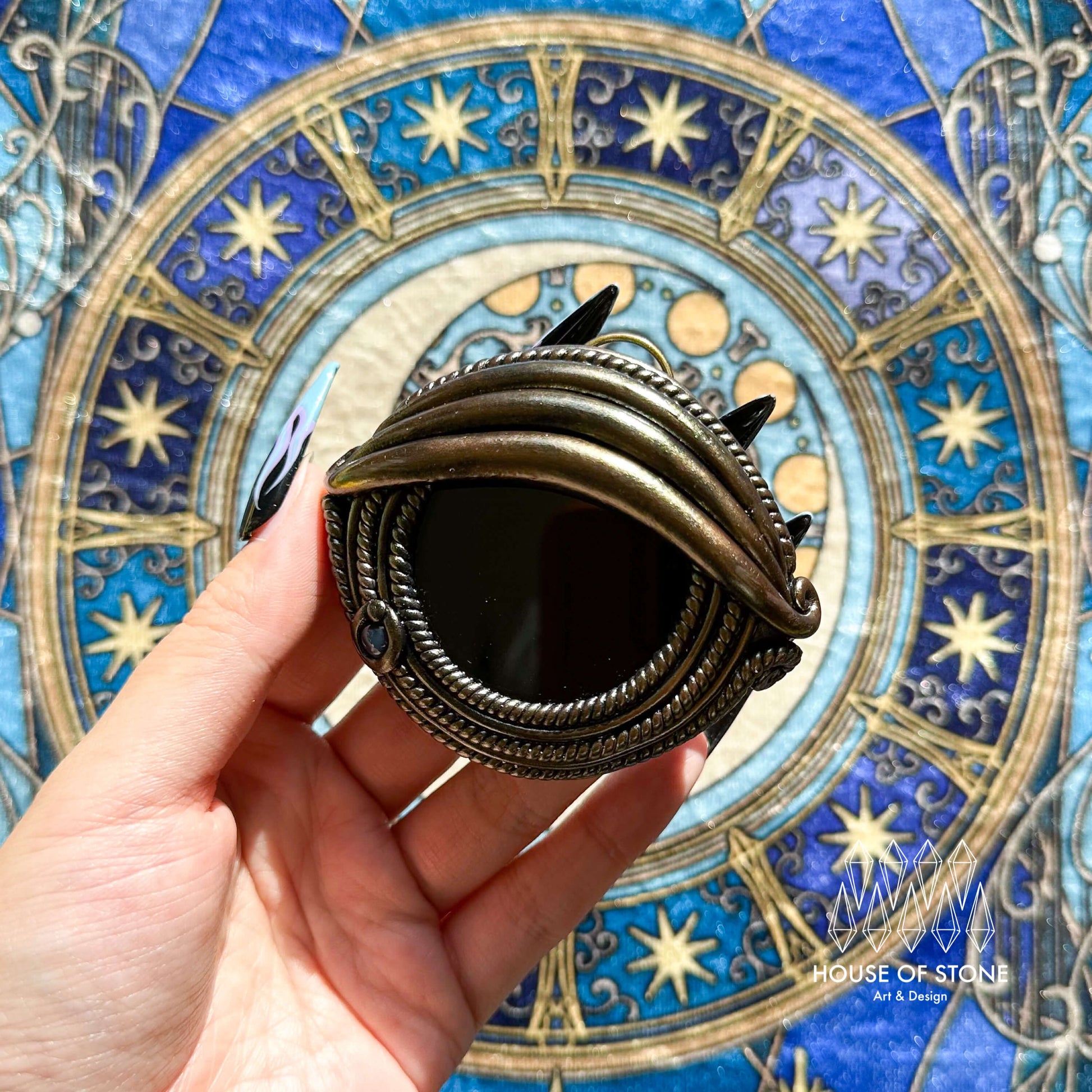 Black obsidian mirror, Agate, Clay