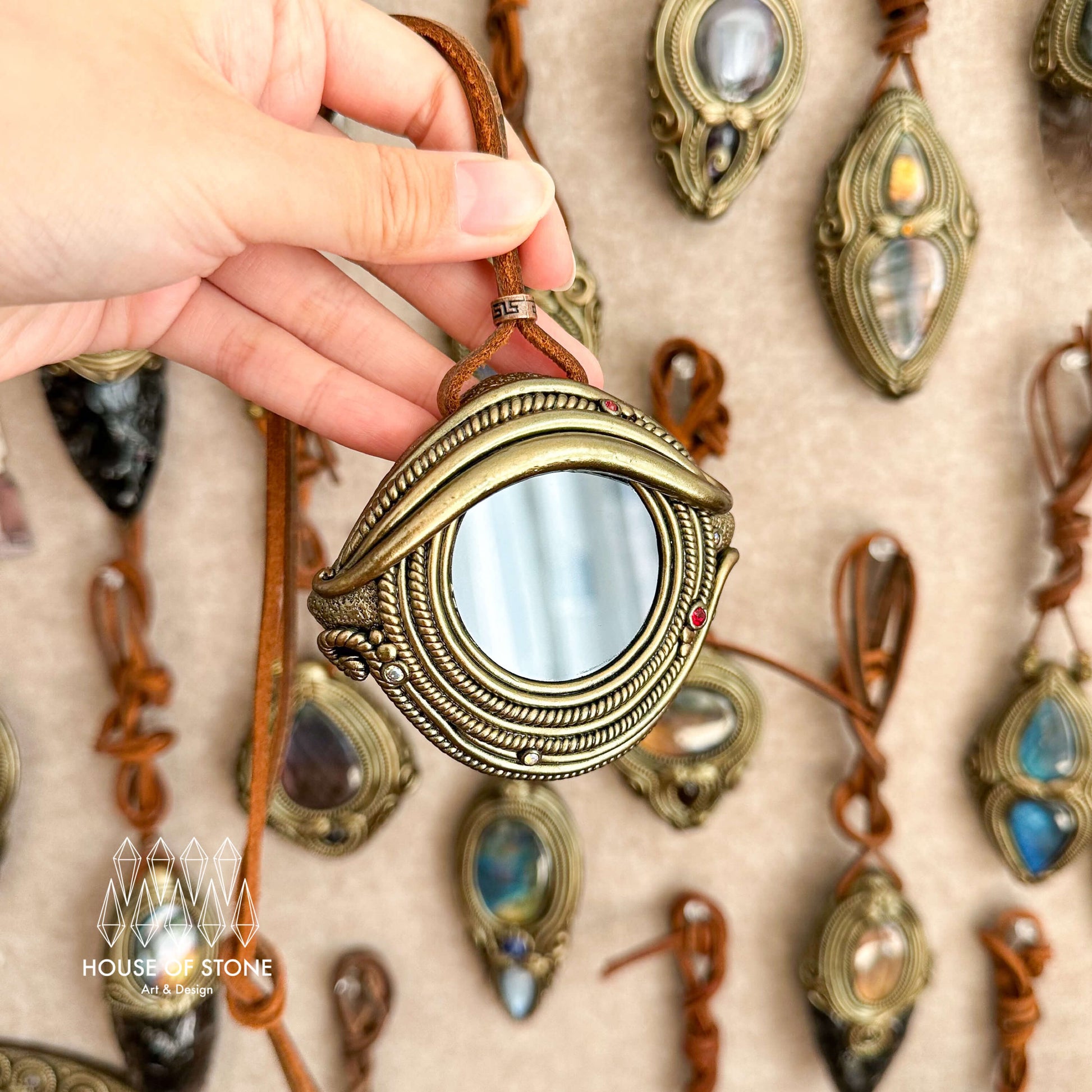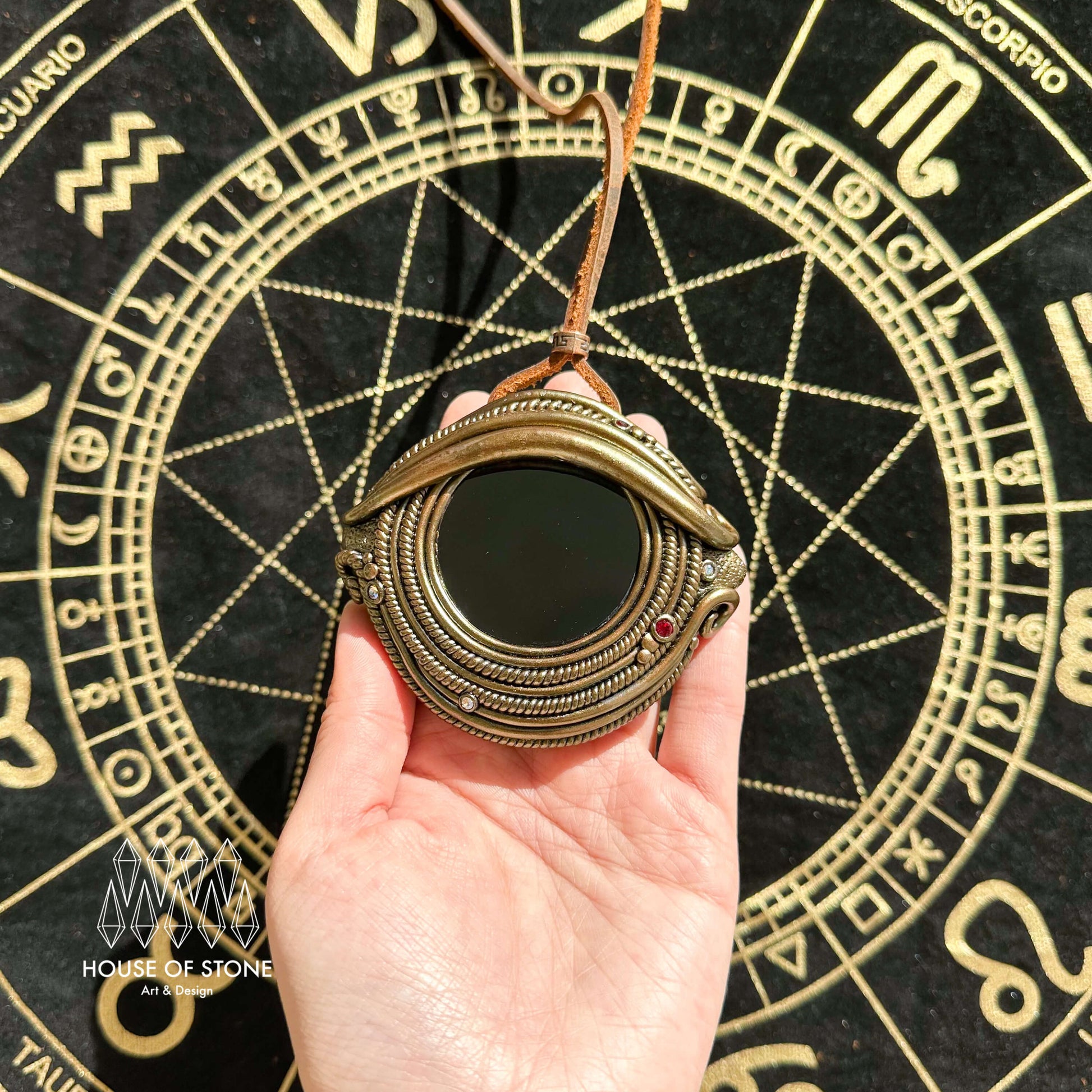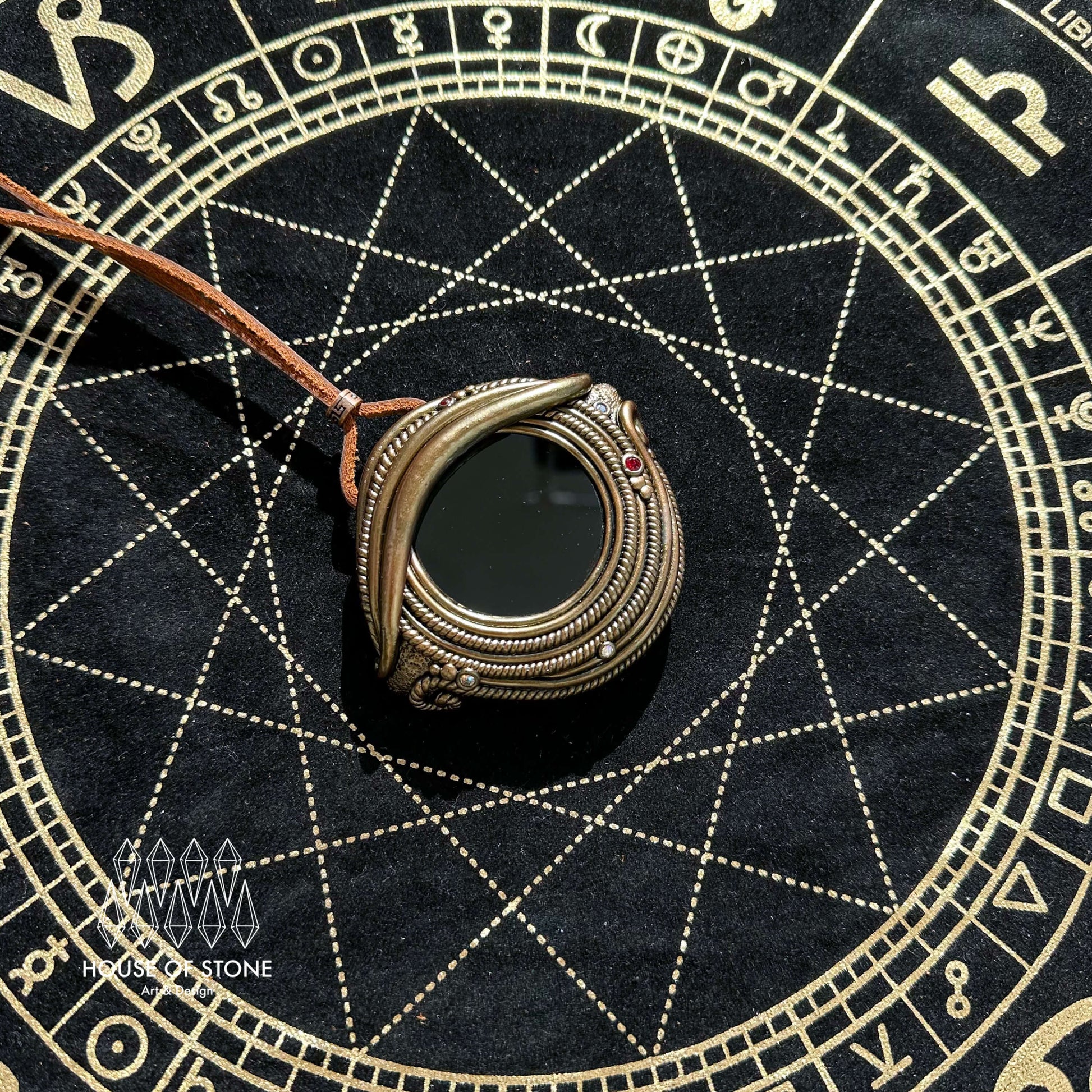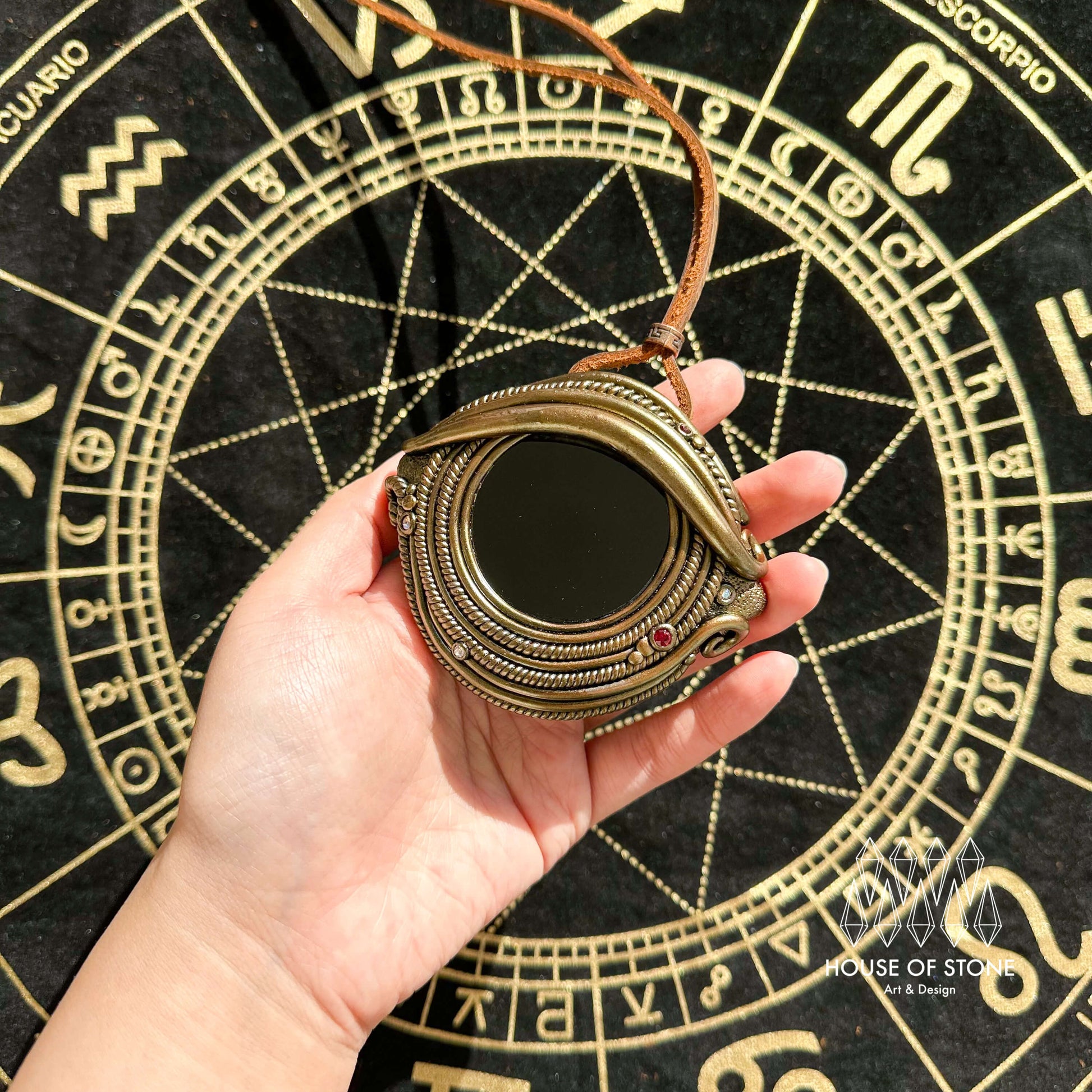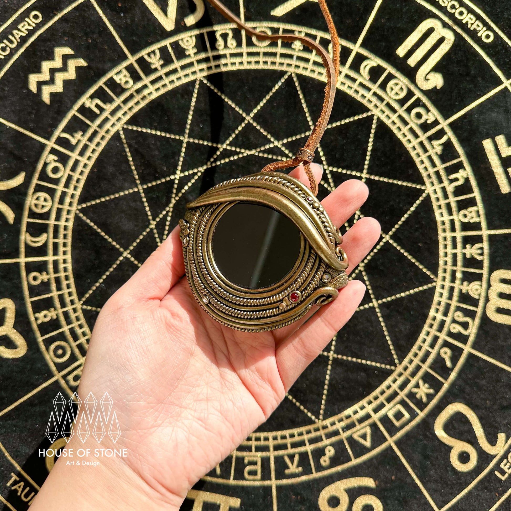 Handmade Natural Black Obsidian Pendant Necklace/Magic Obsidian Mirror Crystal Pendant/Scrying Mirror Protection Jewelry/Altar Tool