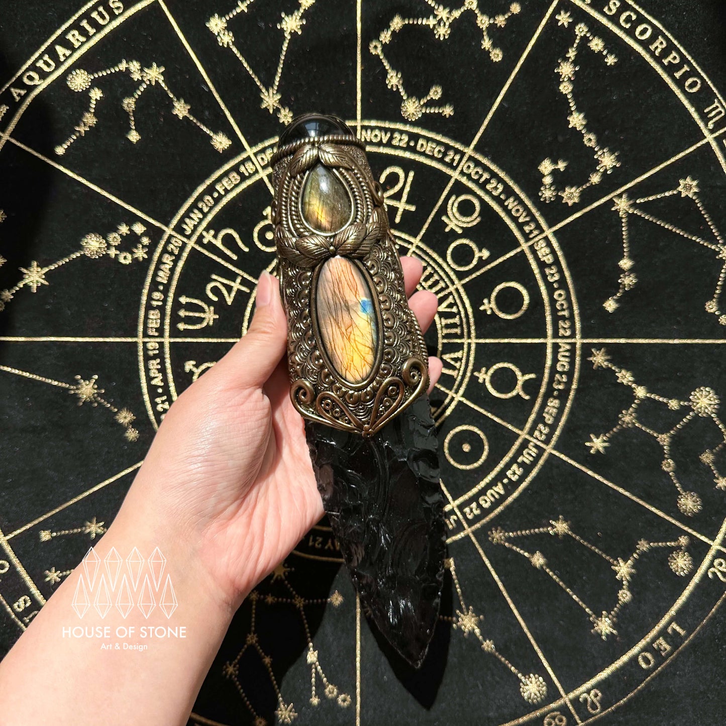 Natural Handmade Crystal Quartz Witch Knife/Magic Crystal Arrowhead/Crystal Dagger/Root Chakra Healing/Boho Wand/Ceremonial Knife/Altar Tool