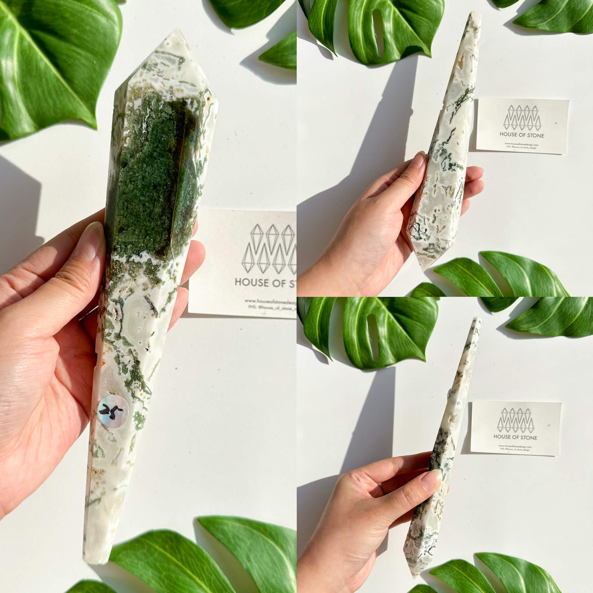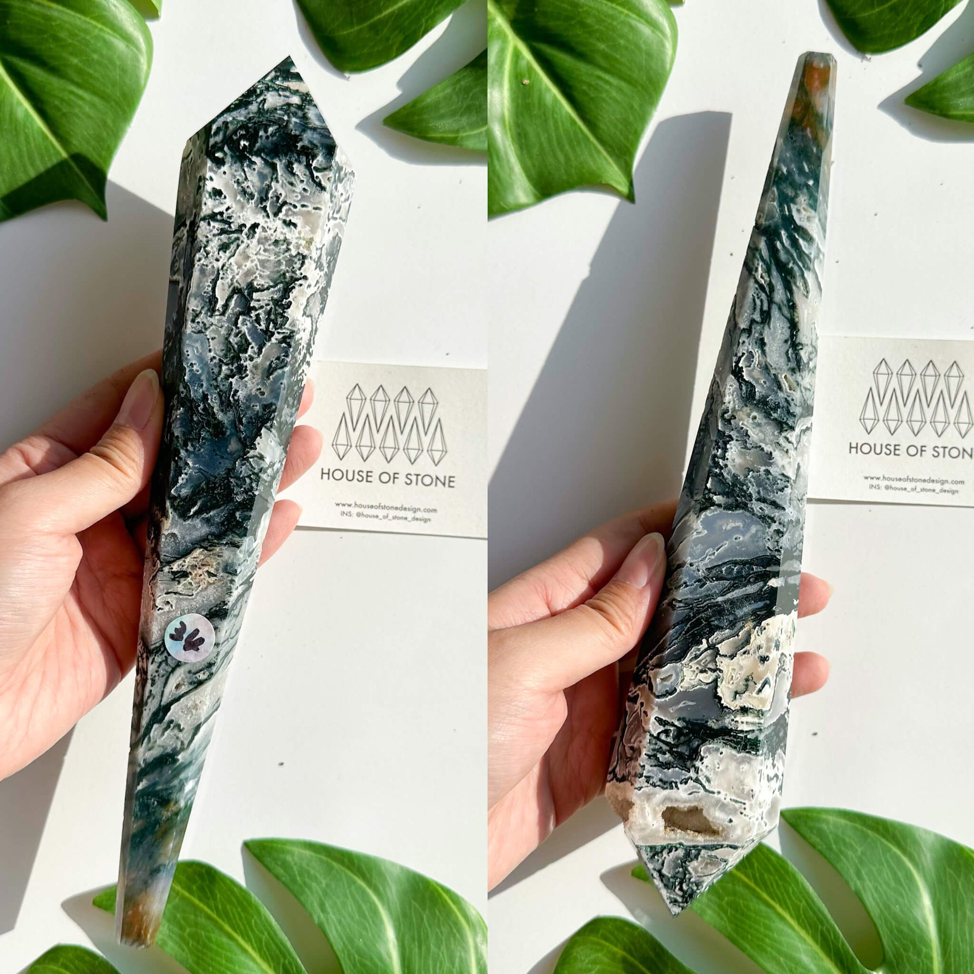Natural Moss Agate Wand/Druzy Moss Agate Crystal Point Wand/Moss Agate Crystal Handle/Moss Agate Stem/Wedding Bouquet Handle/Heart Chakra Healing/AAA